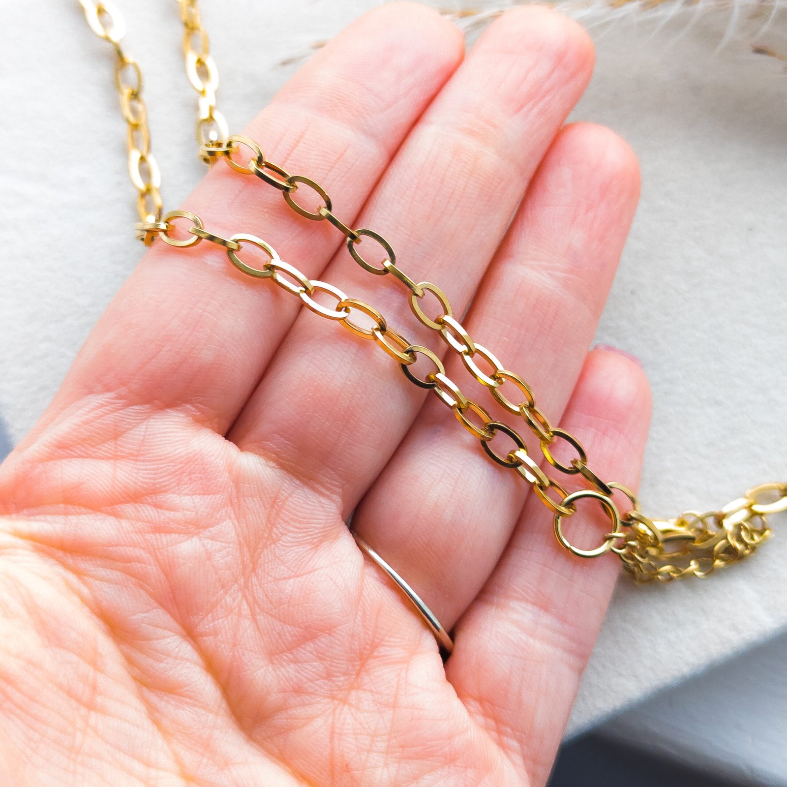 Zawieszka o wymiarach 3 cm na 3,5 cm zawieszona jest na grubym łańcuszku o szerokości oczek 4 mm, wykonanym ze stali nierdzewnej. Długość łańcuszka to około 50 cm z dodatkowym 5-centymetrowym przedłużeniem, co pozwala na idealne dopasowanie.
