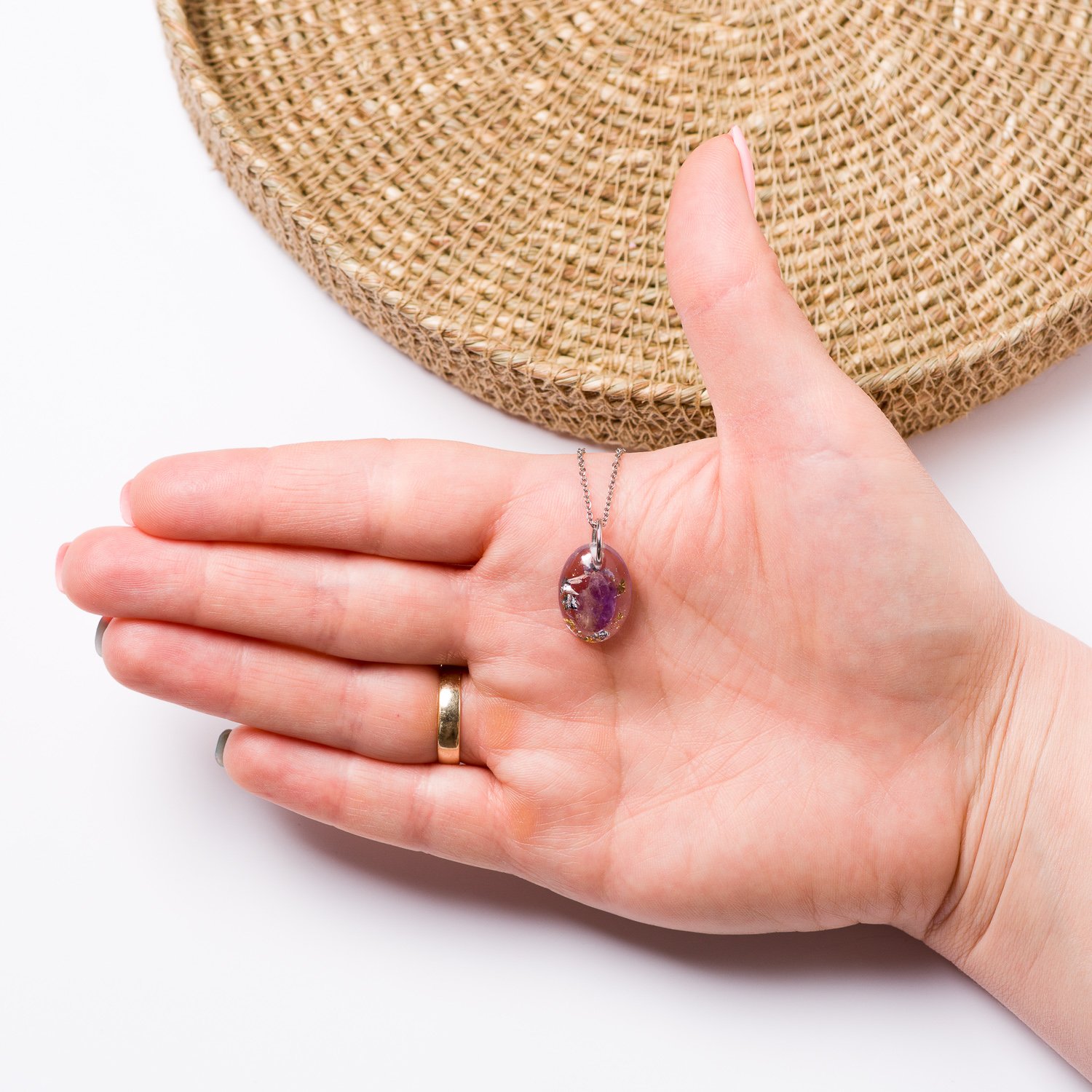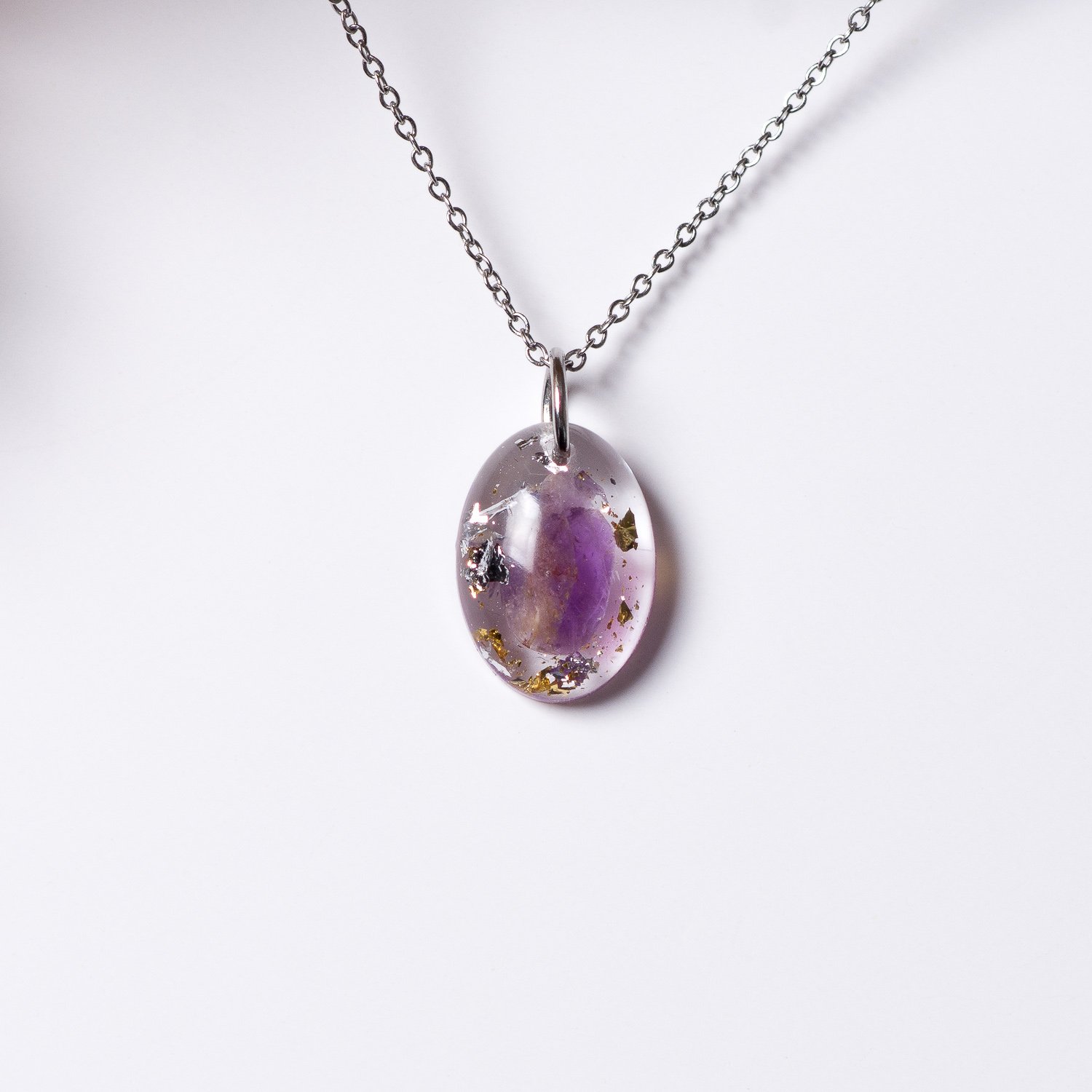 Ten piękny naszyjnik z zatopionym ametystem to idealny wybór zarówno do codziennych, jak i eleganckich strojów. Ametyst jest kamieniem spokoju i ochrony. Jest szczególnie polecany osobom urodzonym pod znakiem Wodnika, Ryb, Panny i Barana.