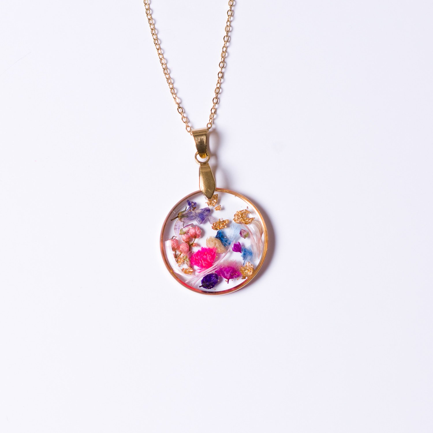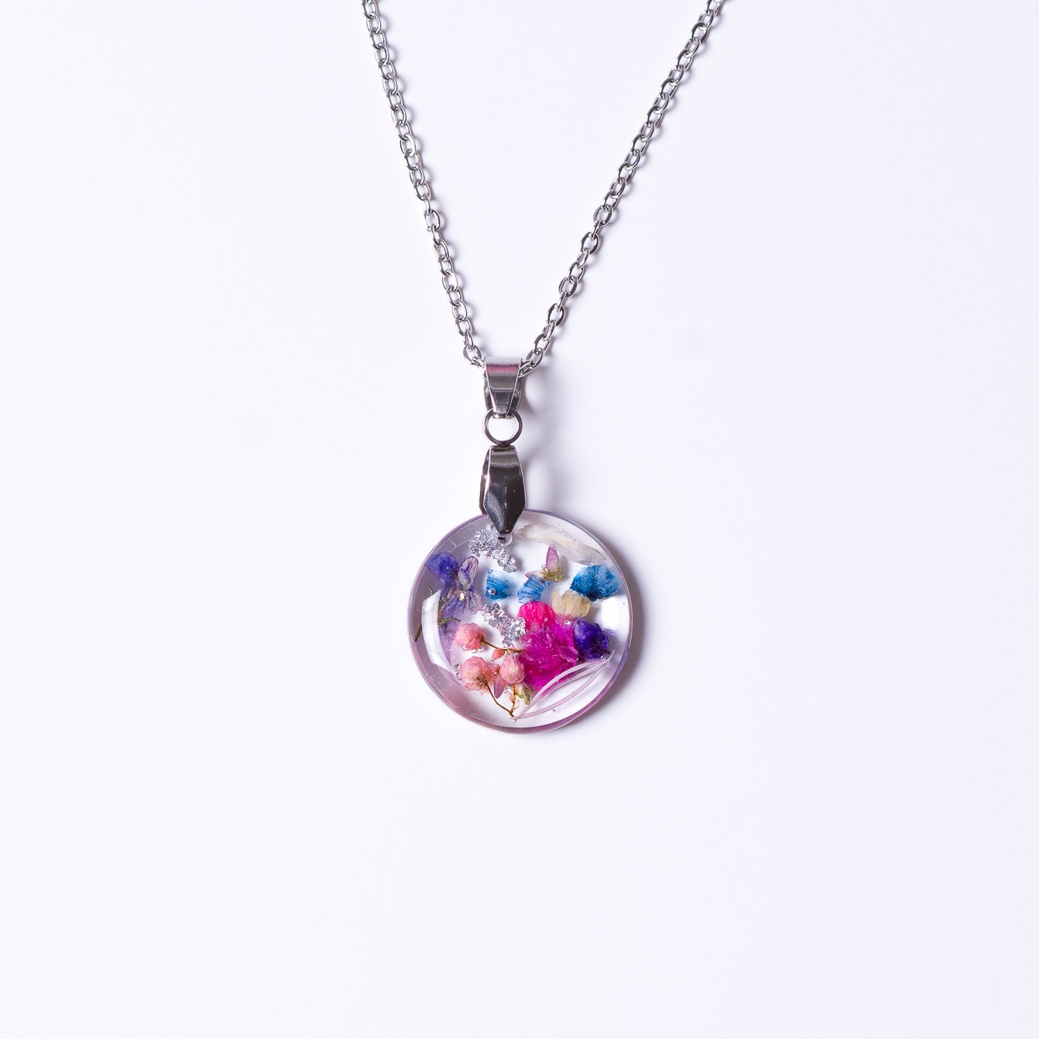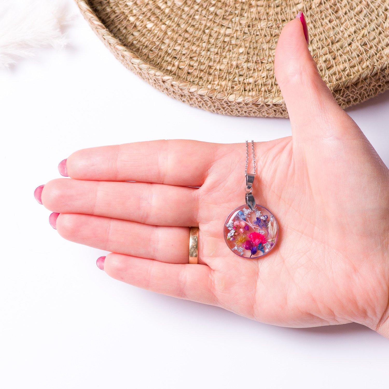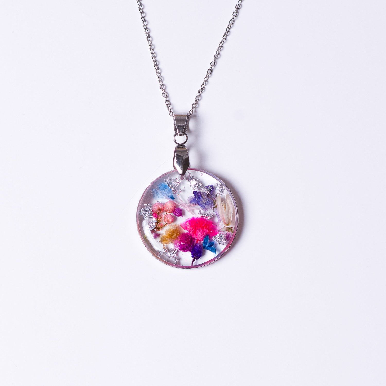 Piękny naszyjnik z kolorowymi kwiatami, idealny do wiosennych i letnich stylizacji. Stanowi również doskonały prezent.