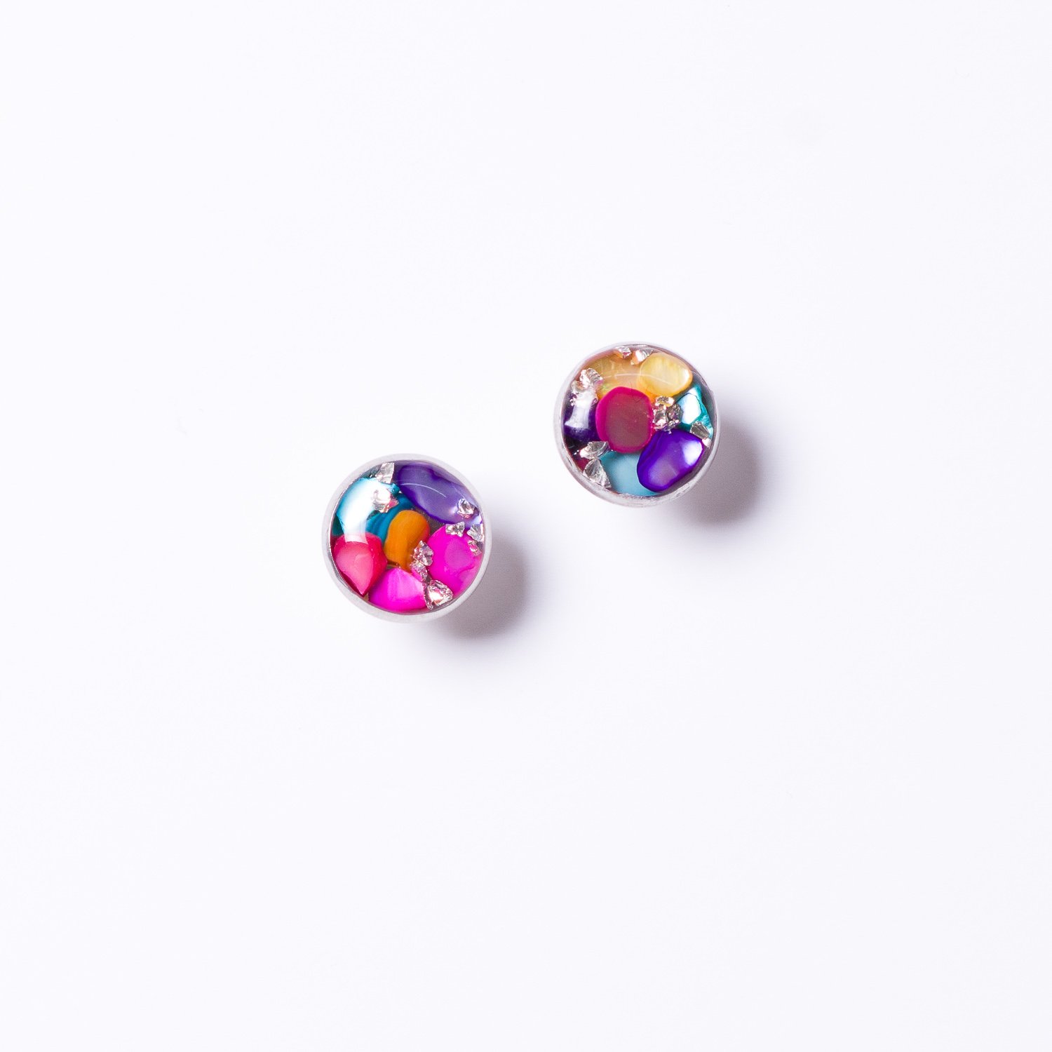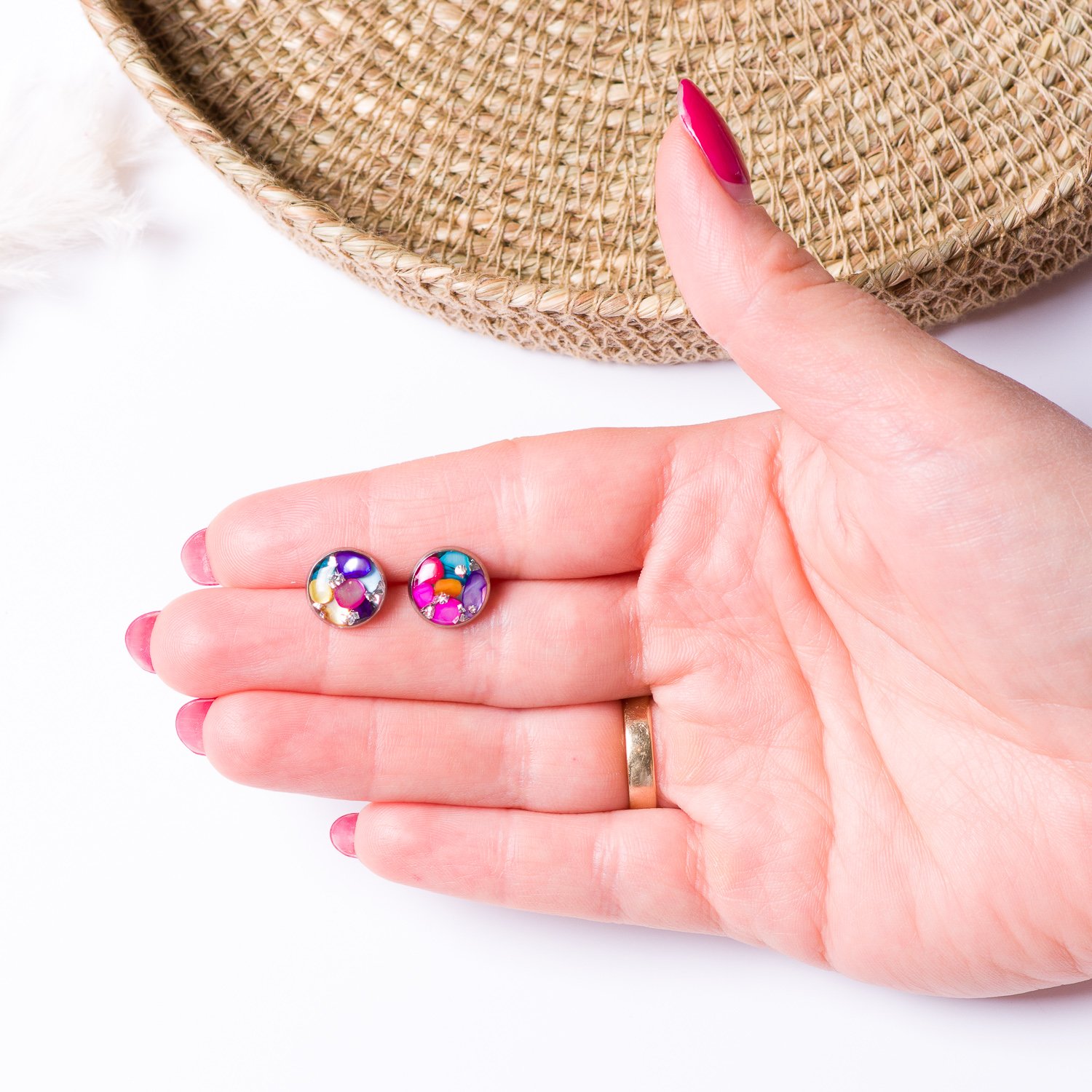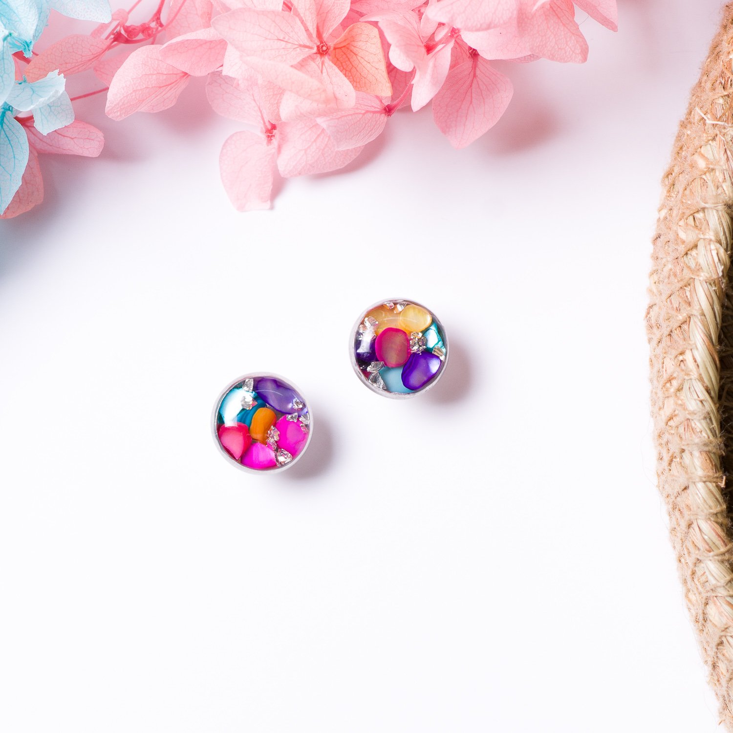 Piękne kolczyki sztyfty z kolorowymi kamieniami, które pięknie odbijają światło, to idealny dodatek do codziennych stylizacji. Doskonałe na każdą porę roku.
