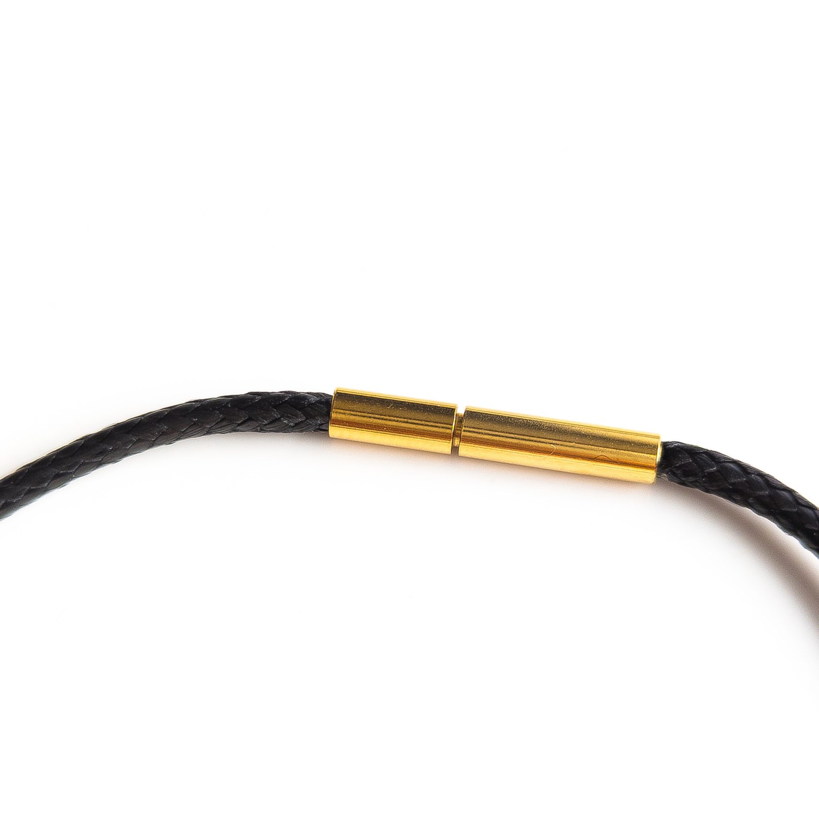 This necklace features a round resin pendant with embedded agate chips and gold flakes, hanging from a black cord that measures 60 cm in length. The pendant is approximately 2.5 cm in diameter, showing off the warm peach‑orange tones of the agate and the shine of the golden accents.