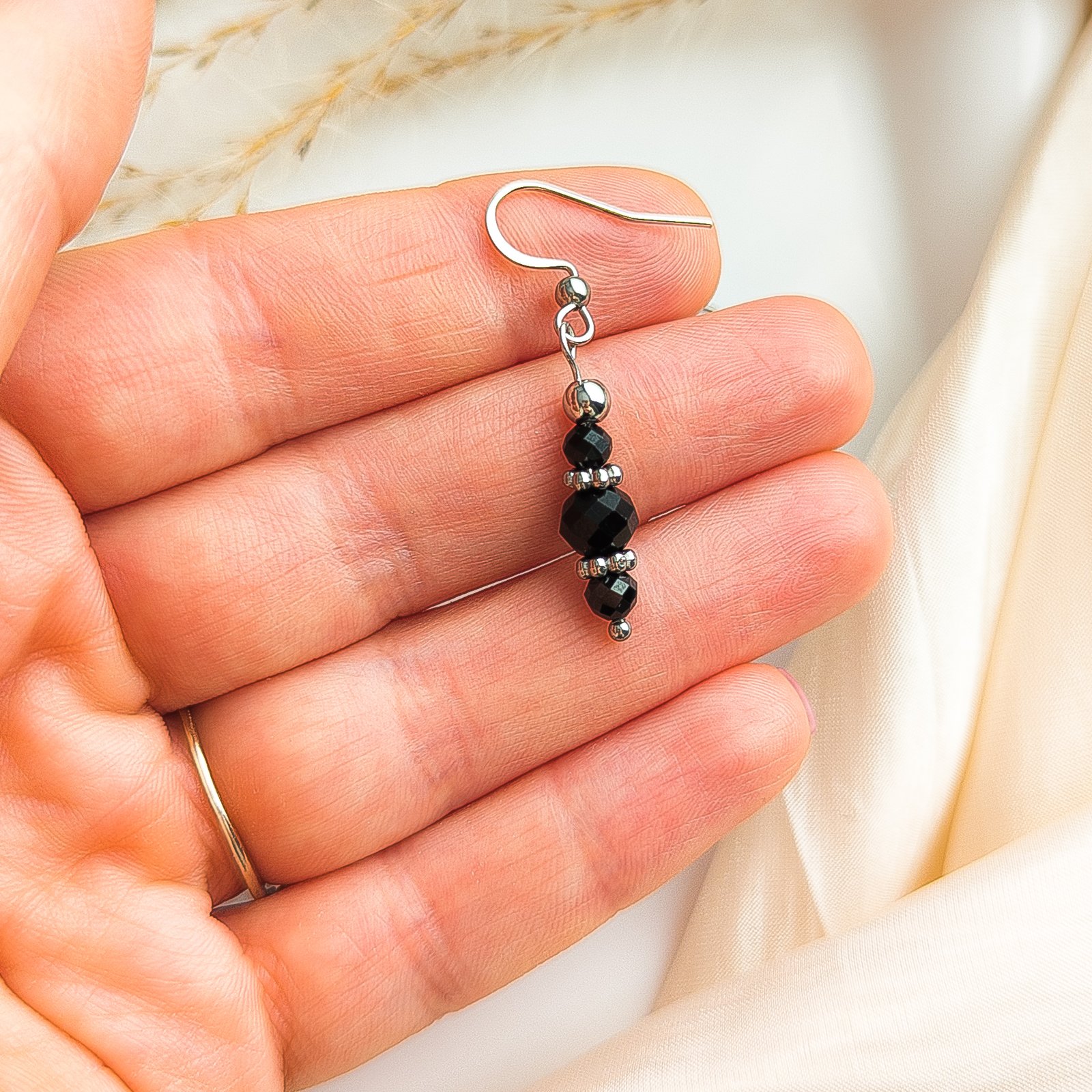 Elegant earrings featuring faceted black tourmaline, which beautifully reflects the light, giving the jewellery depth and character. Their minimalist yet bold design makes them a perfect accessory for both everyday wear and evening outfits.​