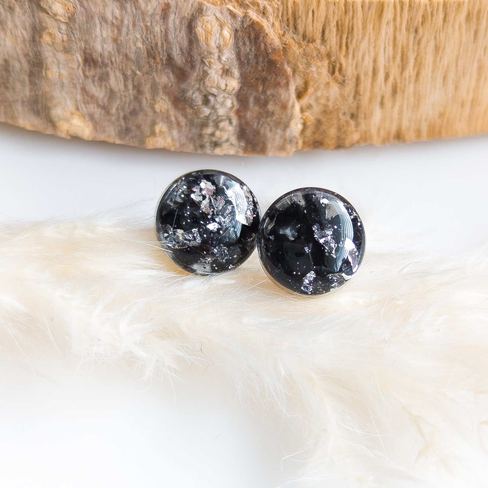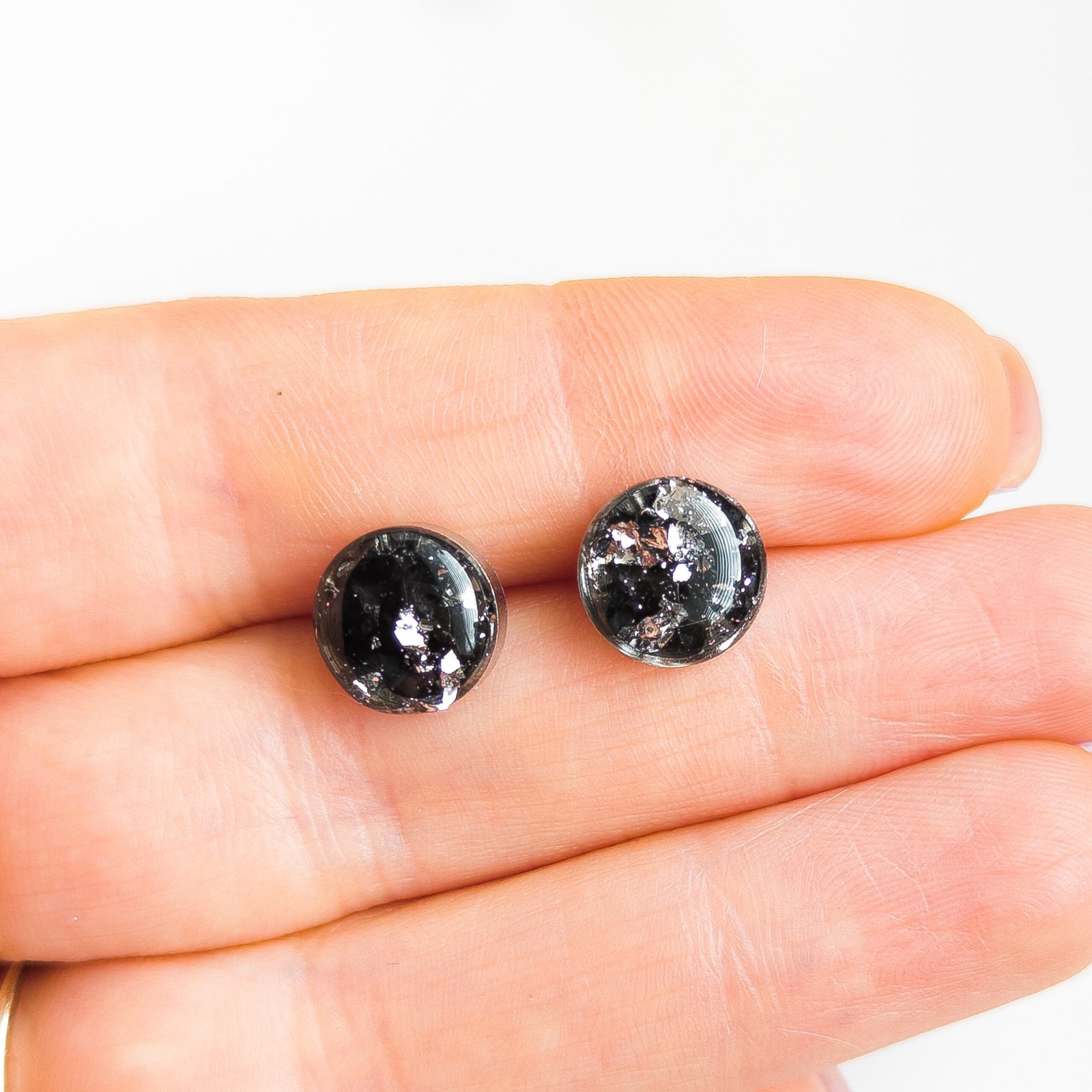 Black Tourmaline Resin Stud Earrings