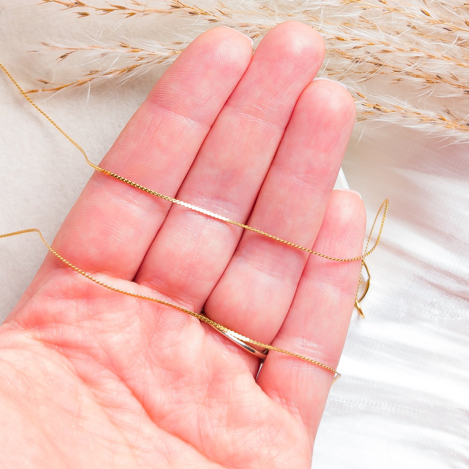Beautiful and extremely delicate necklace with an embedded natural white flower, subtle pearls, and gold foil flakes. This is an ideal choice for those who appreciate delicate jewellery that adds lightness and a romantic touch to any outfit. The pendant measures 1.5 cm in size, and the very fine chain is 45 cm long with […]