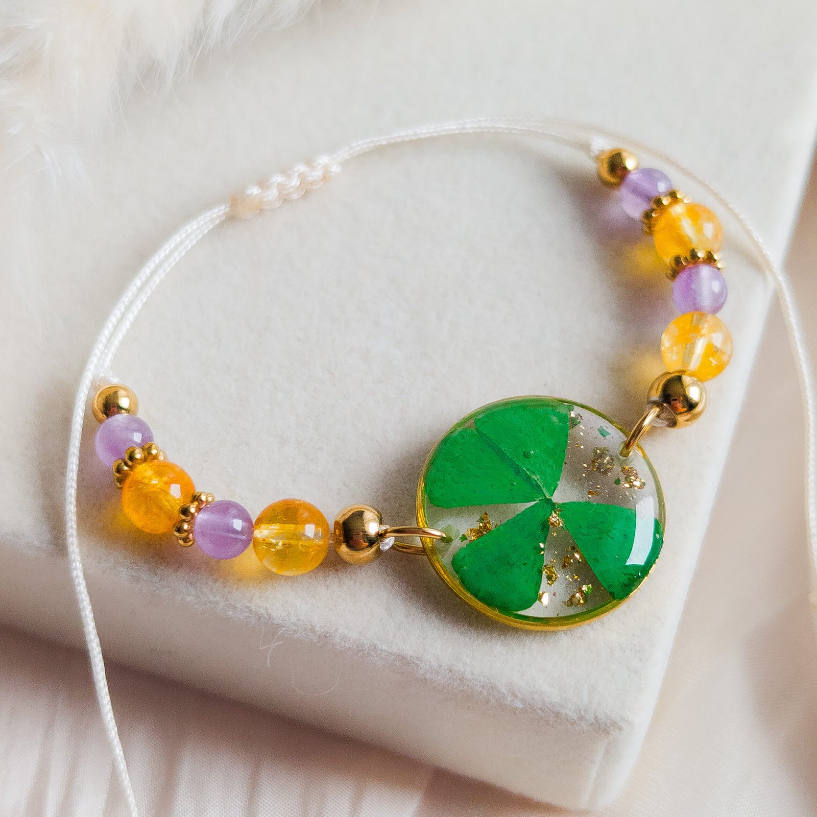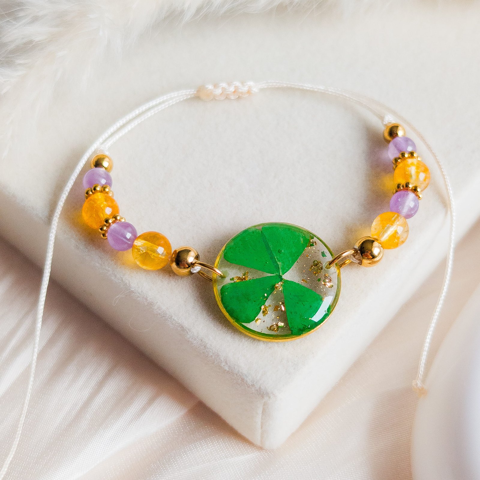 Four-Leaf Clover Citrine Amethyst Bracelet
