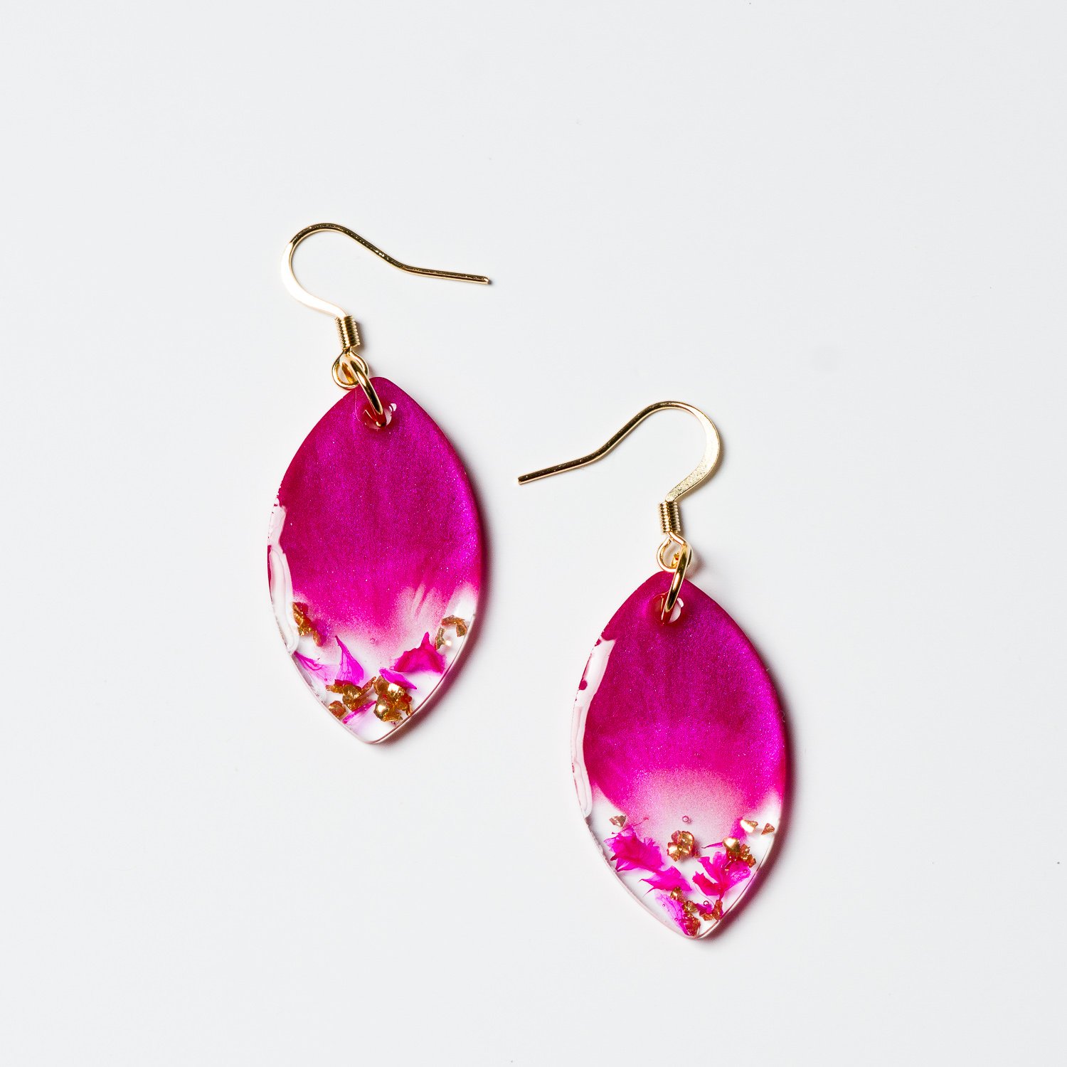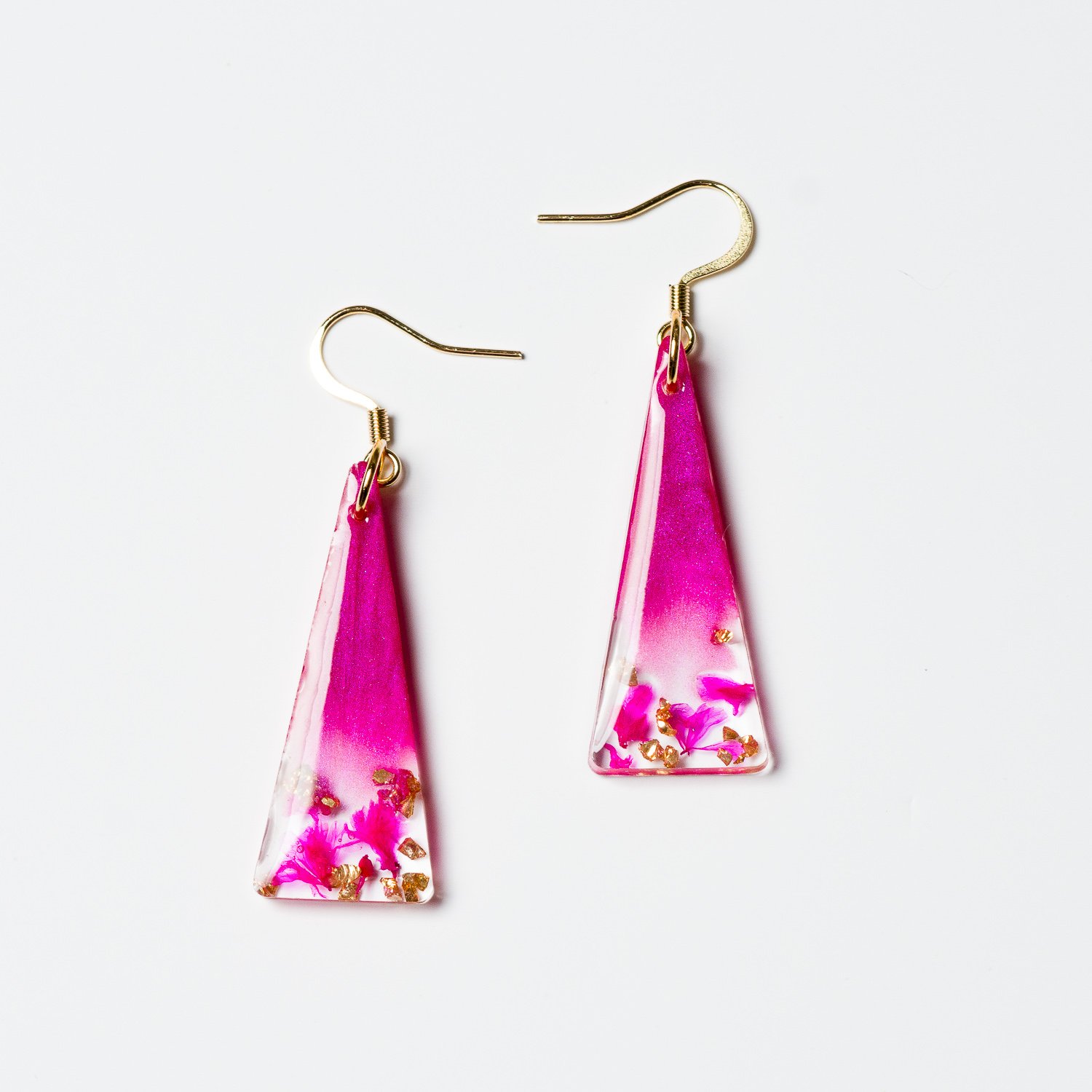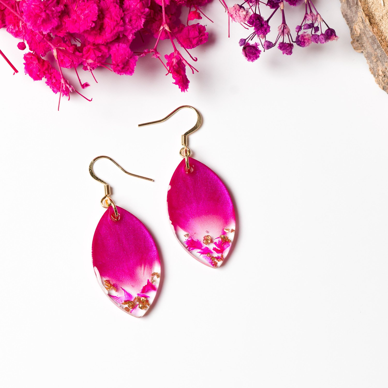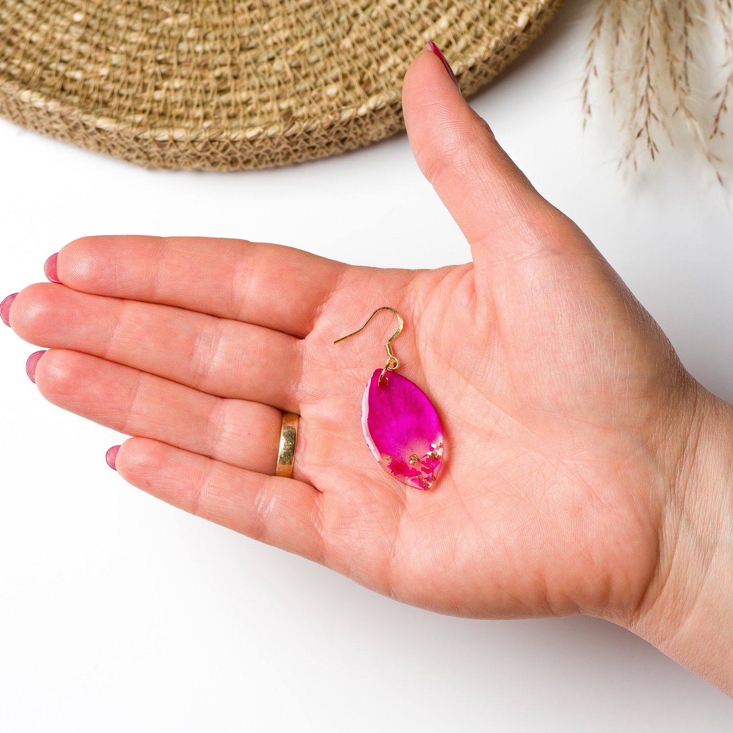 Adorn yourself with these captivating, handcrafted earrings. Featuring delicate, dried flower petals suspended in a clear design, each pair is a miniature work of art. Stainless steel ear hooks ensure a comfortable and secure fit, making them ideal for everyday wear. These lightweight earrings effortlessly add a touch of natural beauty and individuality to any ensemble.