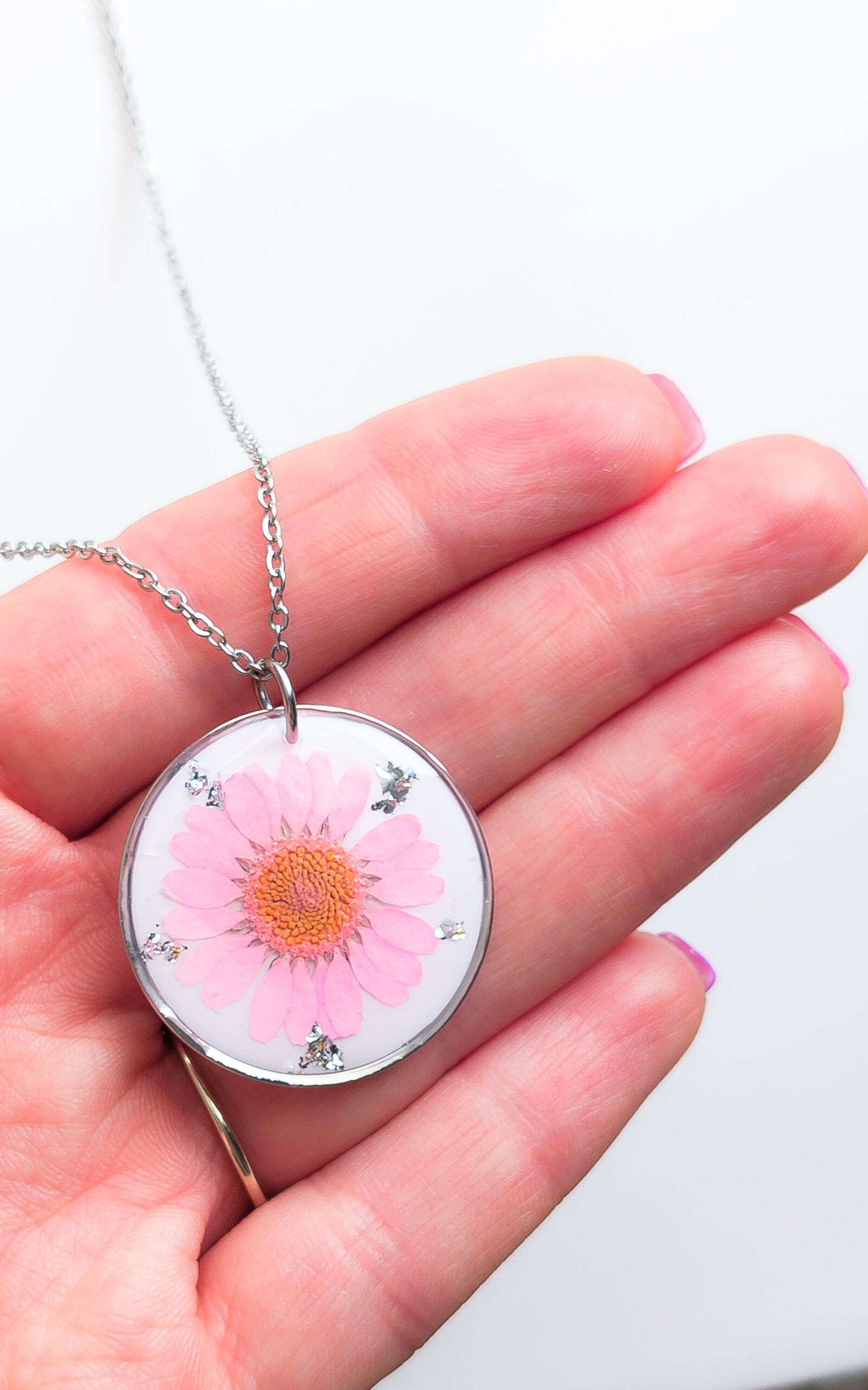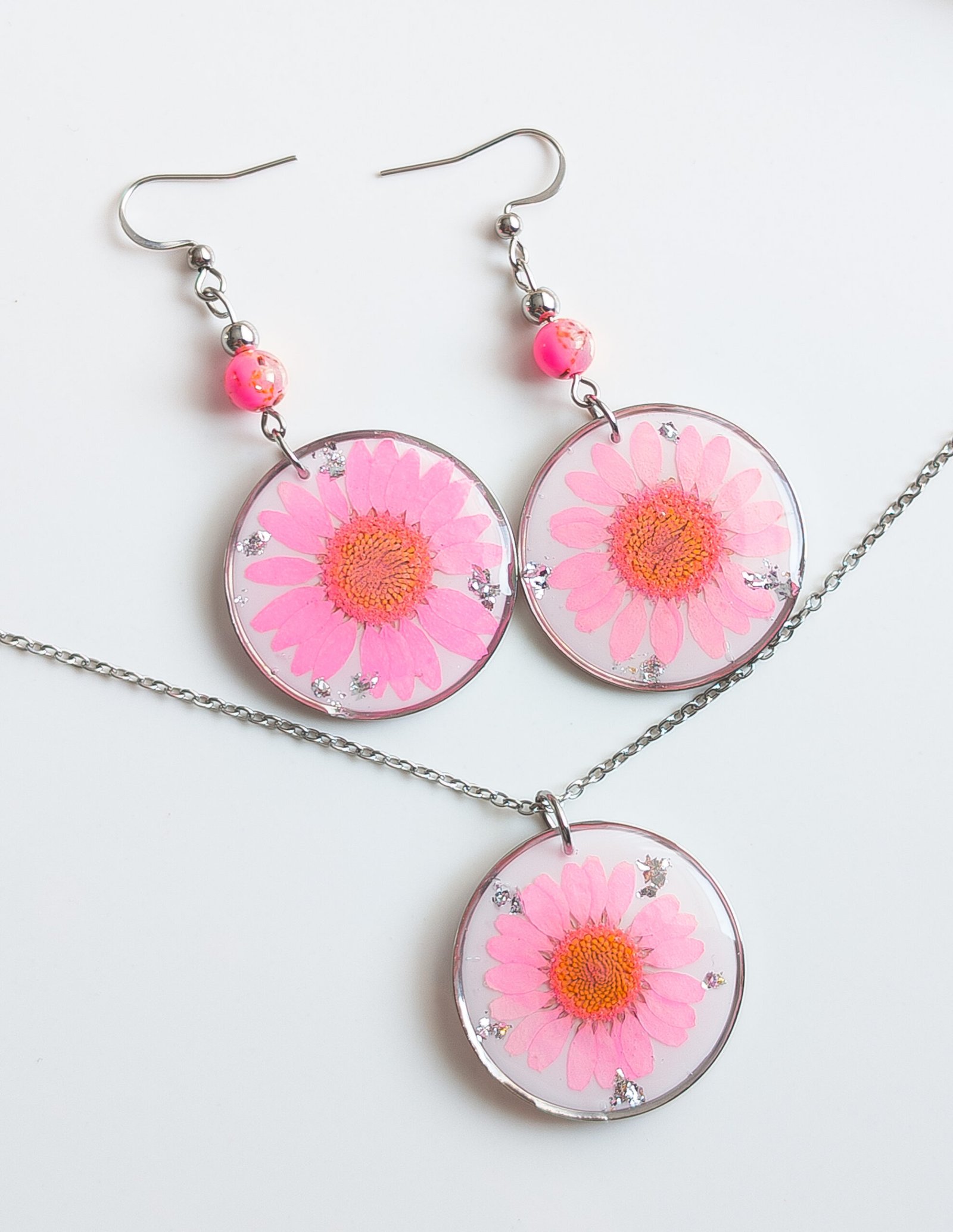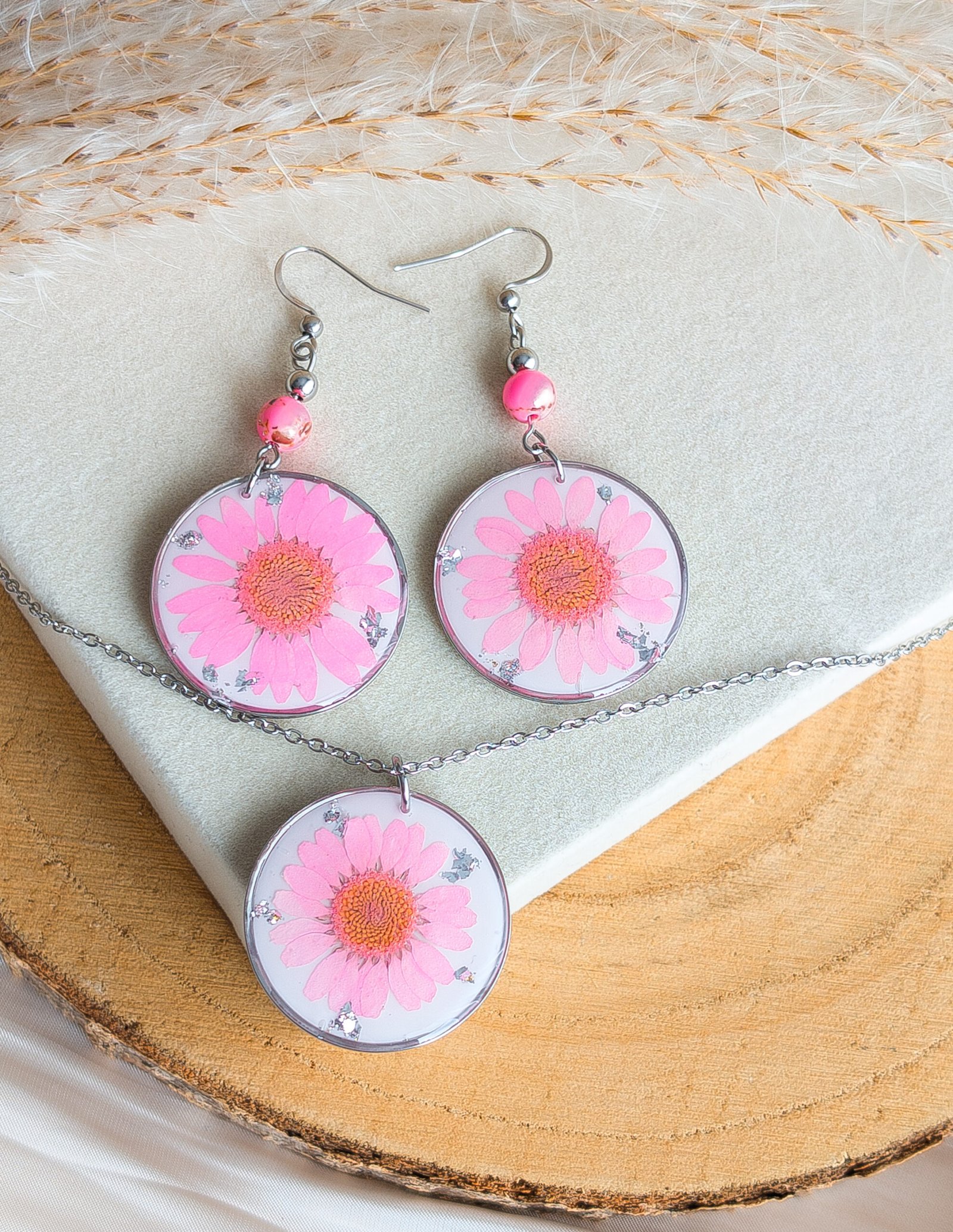 Cheerful jewellery set with a pink daisy, perfect for any season – brings joy and freshness to everyday and occasional outfits. Lightweight and comfortable to wear.