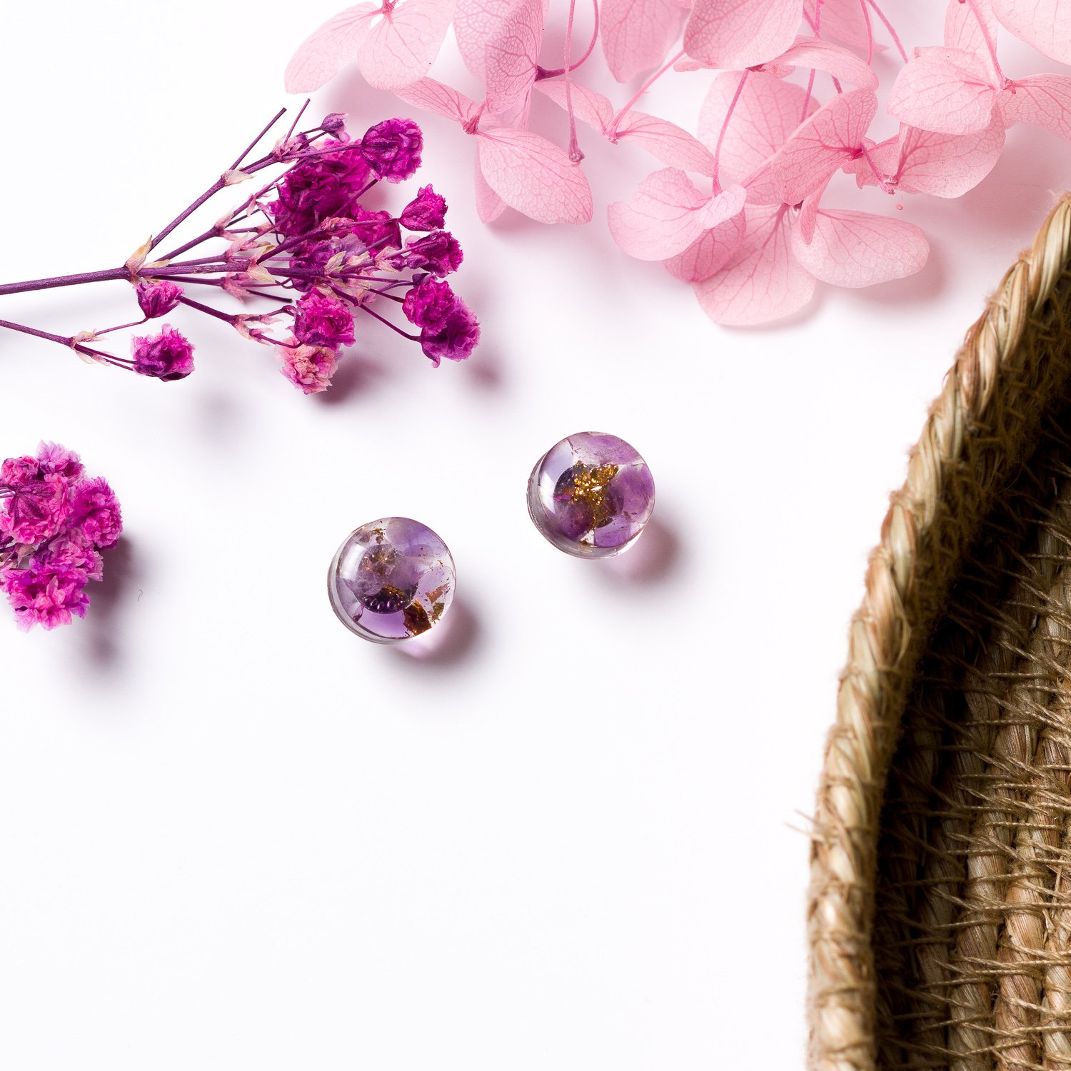 These beautiful earrings featuring embedded amethyst stones are the perfect addition to everyday outfits. Amethyst is a stone of calm and protection. It is particularly recommended for those born under the signs of Aquarius, Pisces, Virgo, and Aries.