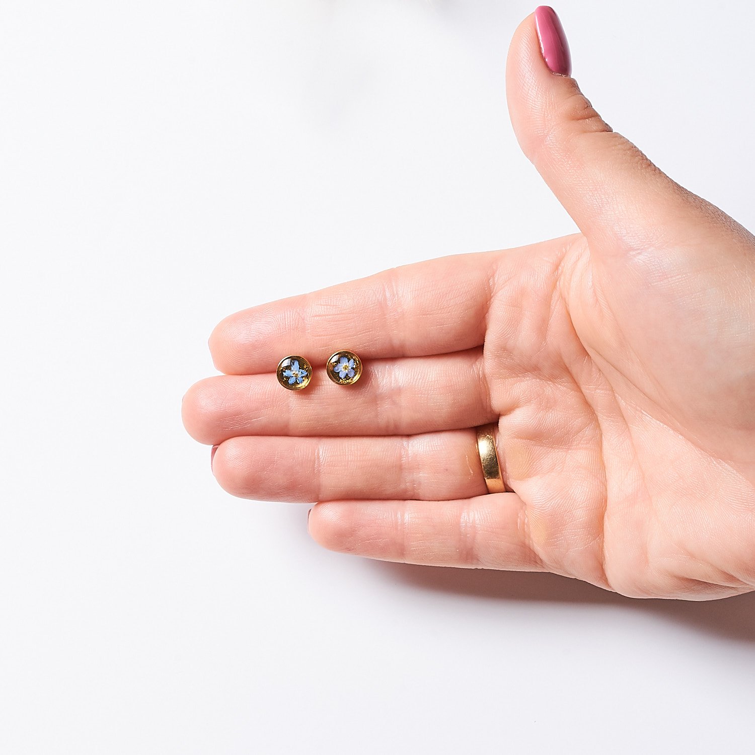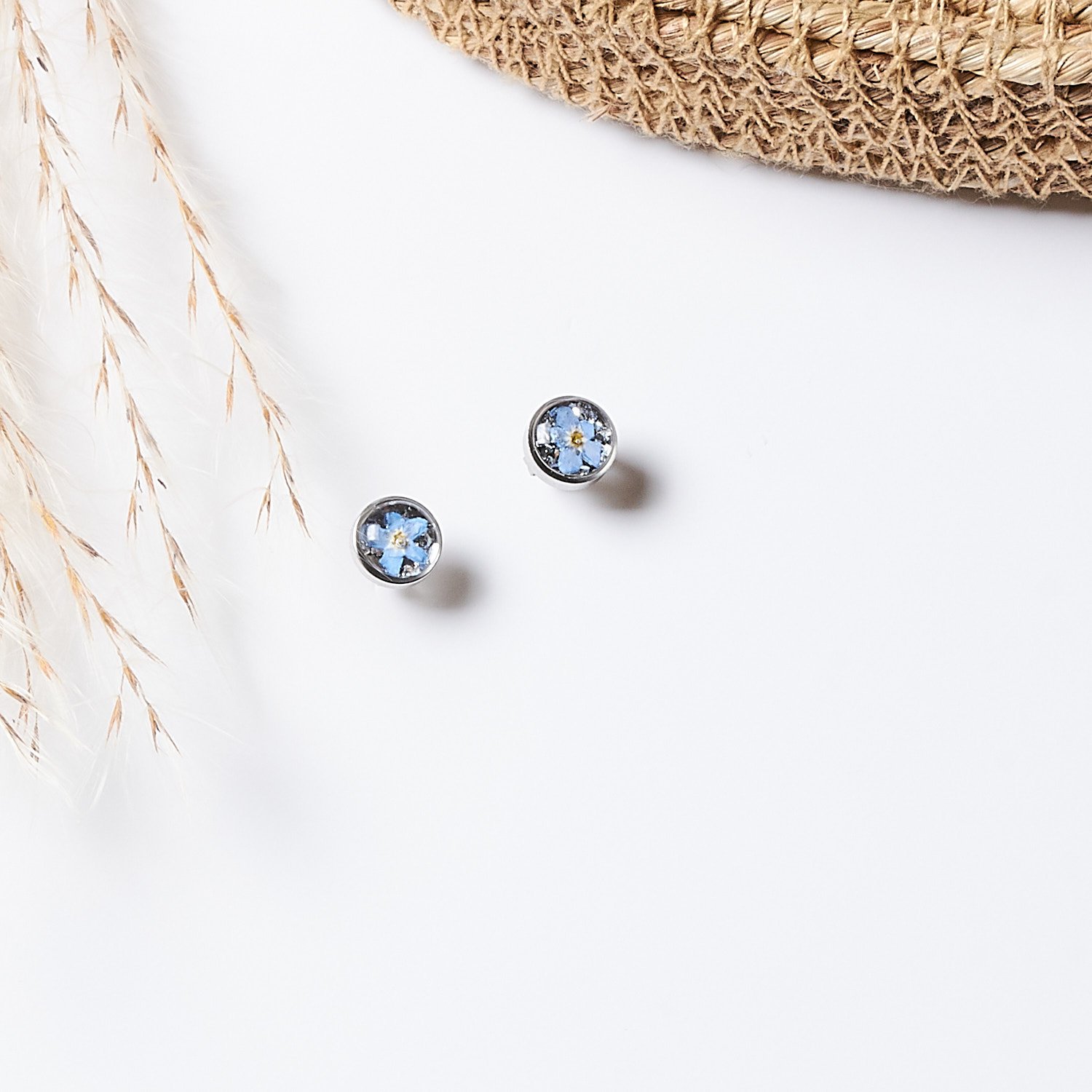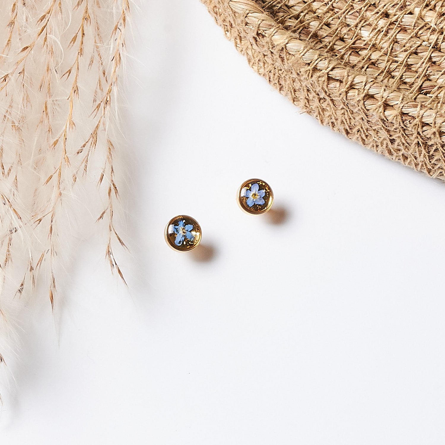 These exquisite earrings feature delicate dried forget-me-nots creating a perfect accessory for both everyday wear and special occasions. They make a wonderful gift, carrying deep symbolic meaning that resonates with the heart.