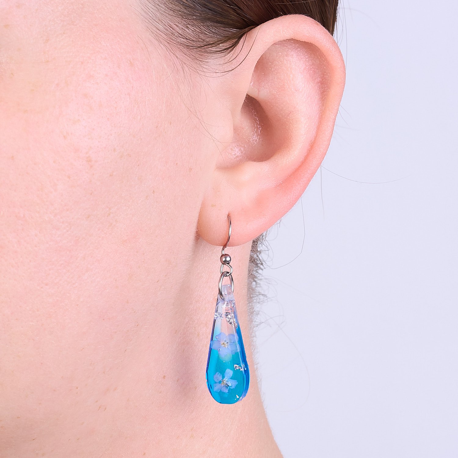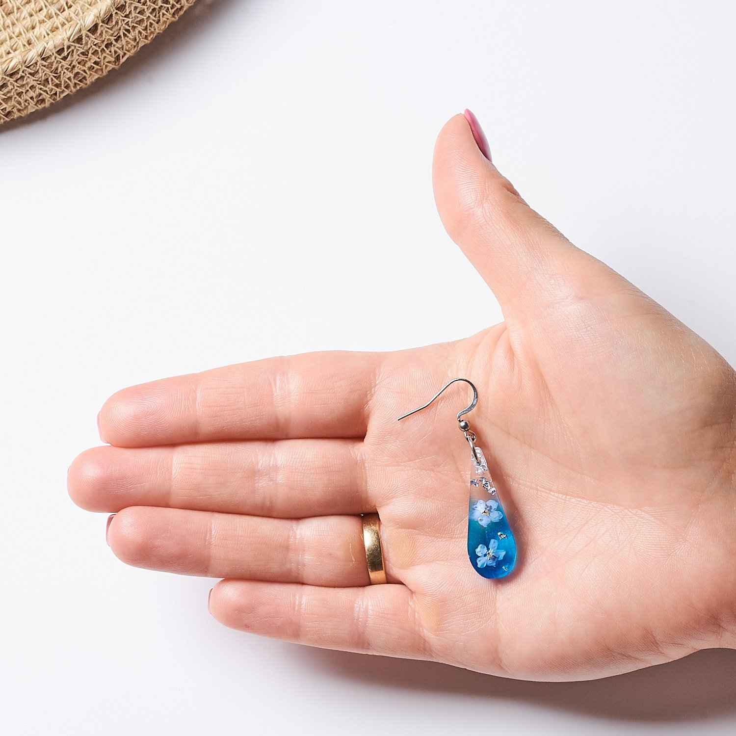 These exquisite earrings feature delicate dried forget-me-nots creating a perfect accessory for both everyday wear and special occasions. They make a wonderful gift, carrying deep symbolic meaning that resonates with the heart.